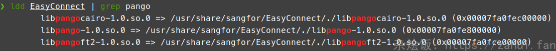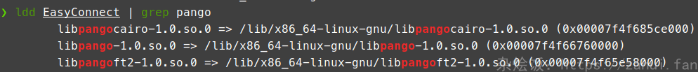 是因为 pango 这个库版本较高导致. 需要手动将低版本的动态链接库放到 easyconnect 程序目录下.